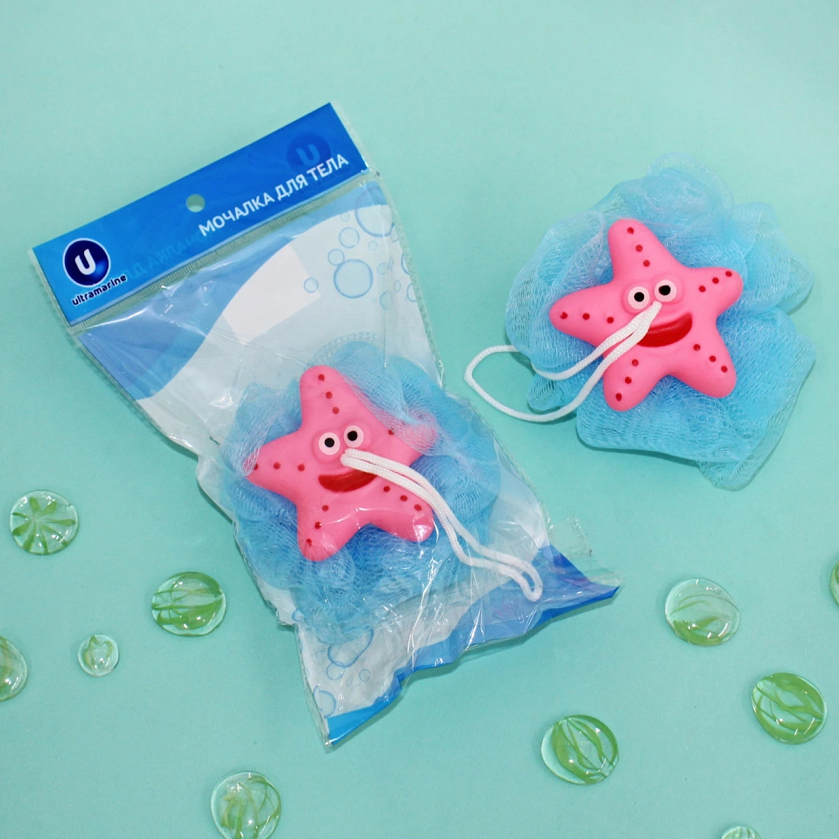 Мочалка-шар для тела полипропиленовая детская "Baby Boom - Морская звездочка", цвет голубой, 20гр, d-11см