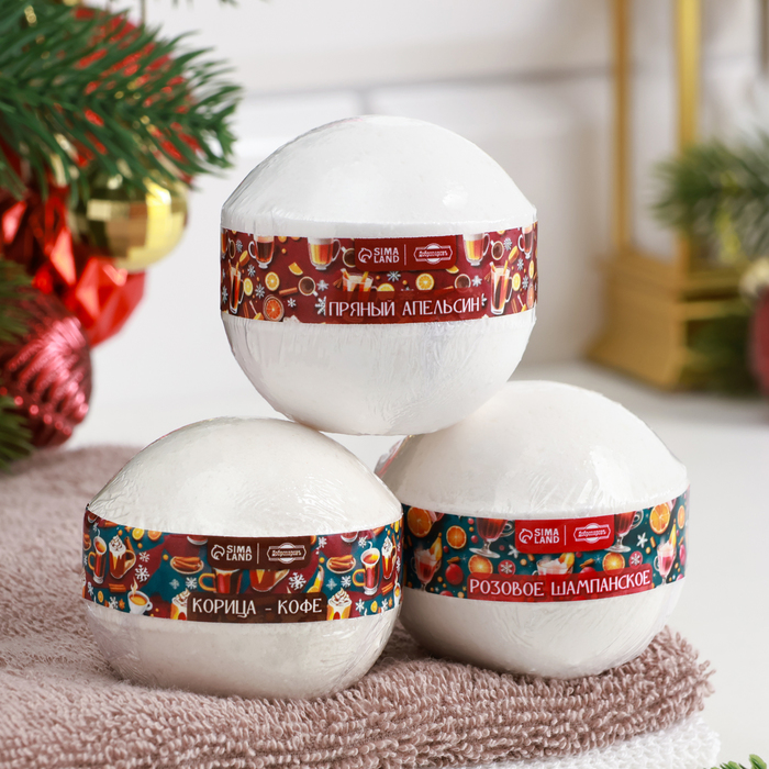 Набор бомбочек 3 шт. «Пряный апельсин, Розовое шампанское, Корица-кофе»