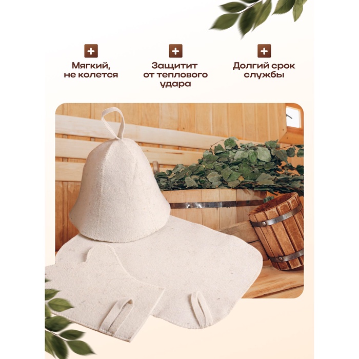 Набор для бани и сауны, 3 предмета: шапка, коврик, рукавица, «Добропаровъ»