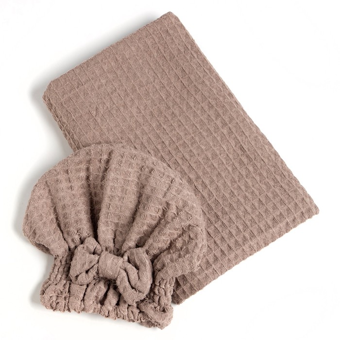 Набор для бани и ванной Этель «Вафля» полотенце 70×140 см+чалма 21×25 см, цв.коричневый