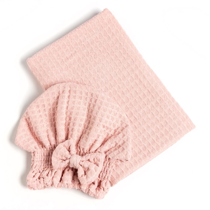 Набор для бани и ванной Этель «Вафля» полотенце 70×140 см+чалма 21×25 см, цв.розовый