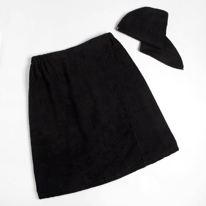 Набор для сауны «Экономь и Я»: полотенце - парео 68×150 см + чалма, 100% хлопок, 320 г/м², чёрный