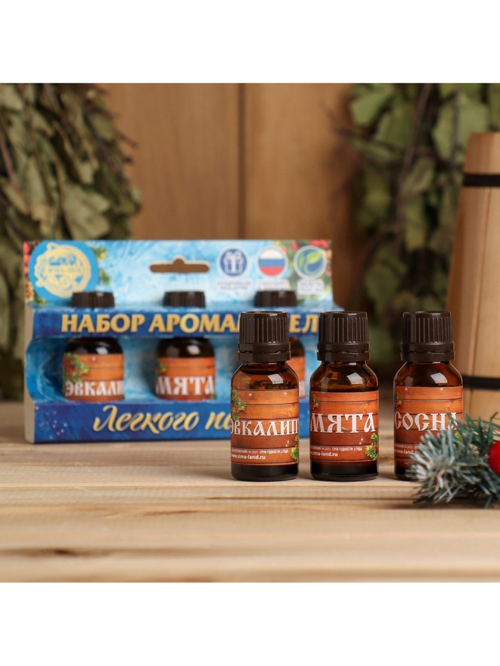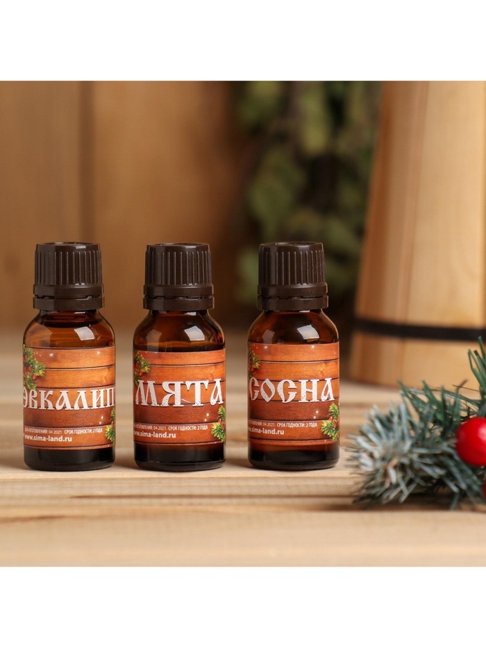 Новогодний набор эфирных масел «С Новым годом! С легким паром!», сосна, эвкалипт и мята, 3 шт. по 15 мл