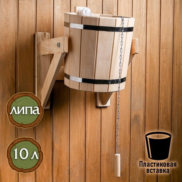 Обливное устройство для бани, 10 л, липа, пластиковая вставка, «Добропаровъ»