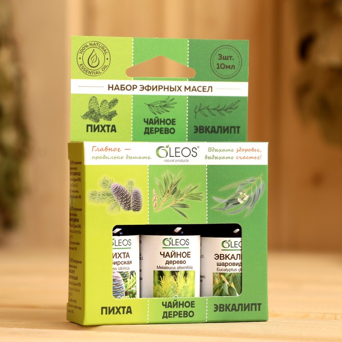 Набор 100% натуральных эфирных масел "Пихта, чайное дерево, эвкалипт"