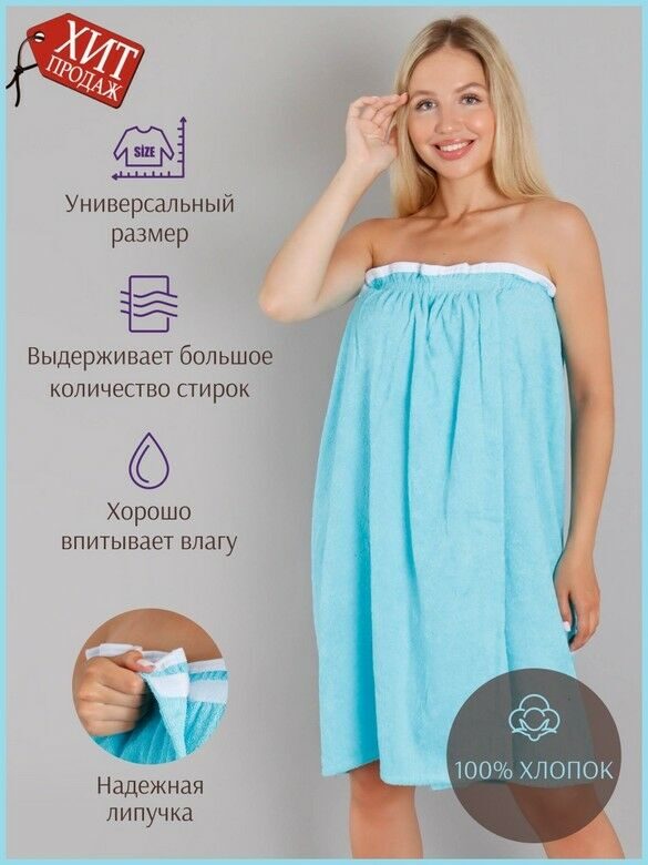 Парео женское для бани и сауны БИРЮЗА махровый хлопок 100%