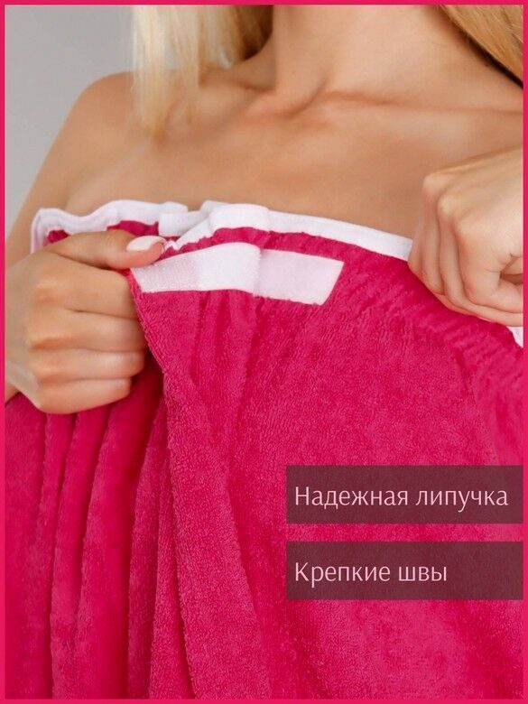 Парео женское для бани и сауны МАЛИНА махровый хлопок 100%