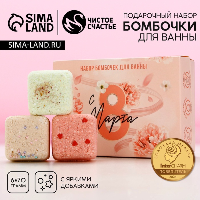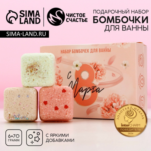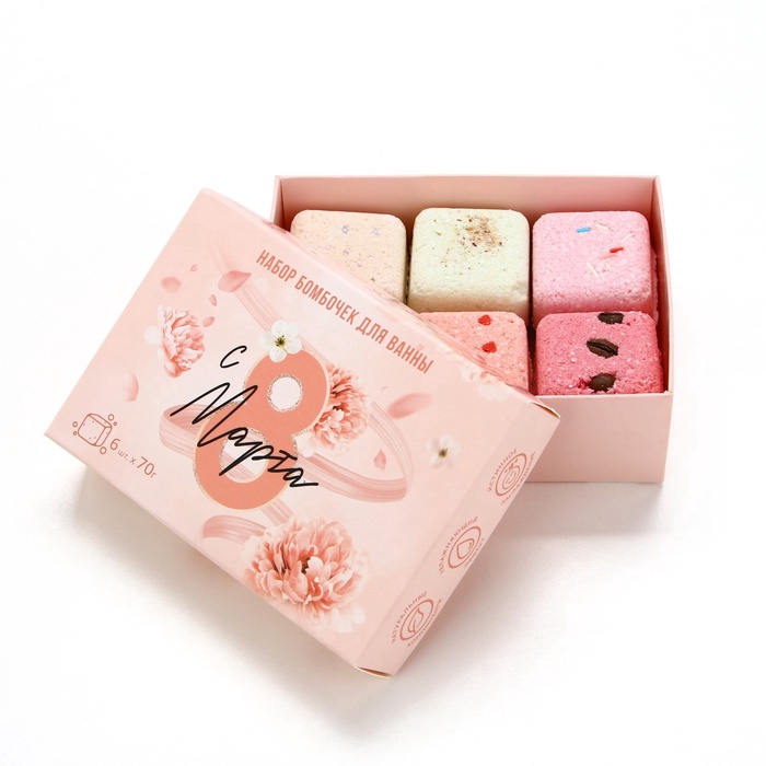 Подарочный набор косметики «С 8 марта!», бомбочки для ванны с добавками 6×70 г, ЧИСТОЕ СЧАСТЬЕ