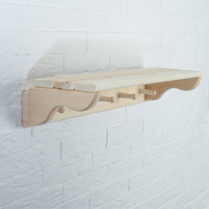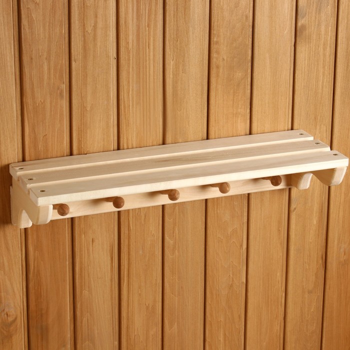 Полка - вешалка для бани и сауны, 57×18×12 см, деревянная, настенная, 5 крючков, «Добропаровъ»