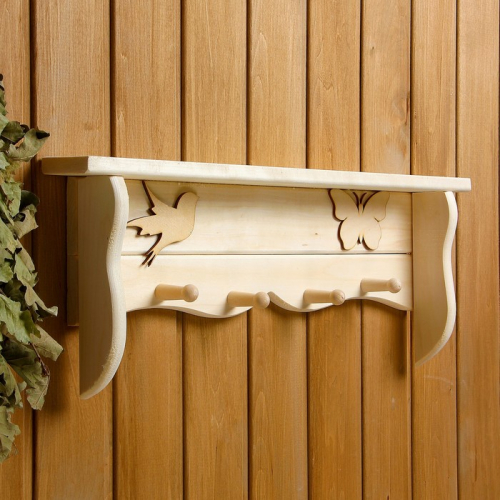 Полка - вешалка для бани и сауны, 33.5×10×35 см, липа, настенная, 3 крючка, «Добропаровъ»