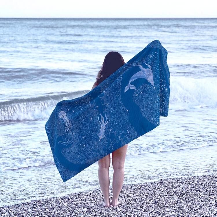 Полотенце банное "На море"- голубой 80*150 см. вафля хлопок 100%