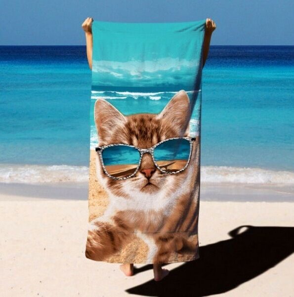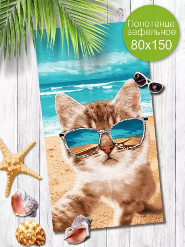 Полотенце банное "Селфи Кот" 80*150 см. вафля хлопок 100%