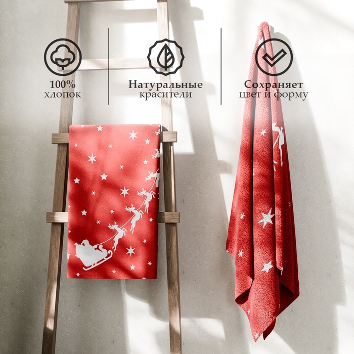 Полотенце махровое «Этель. Оленья упряжка», 70×130 см, хлопок 100%