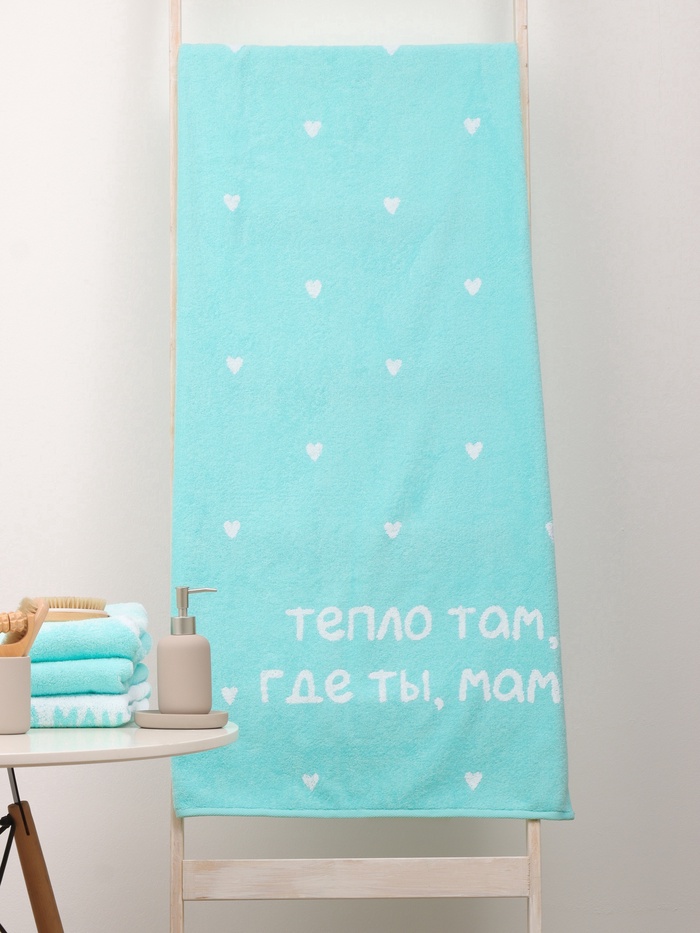 Полотенце махровое «Этель. Тепло где мама», 70×130 см, 100% хлопок, 420 г/м²