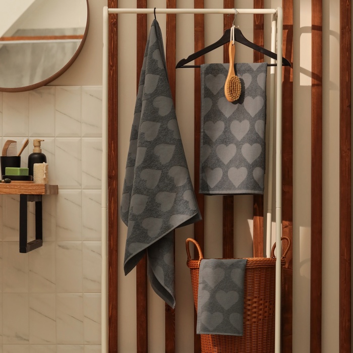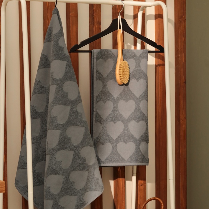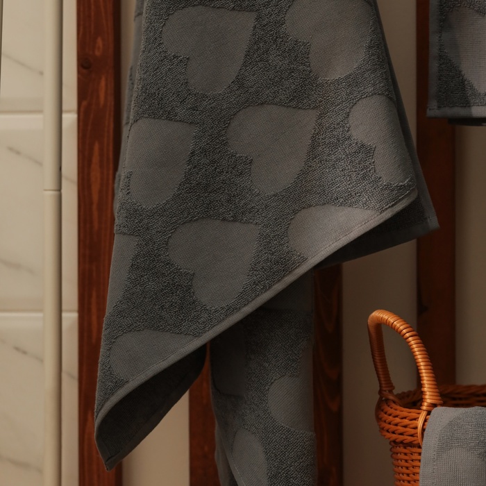 Полотенце махровое Love Life Hearts, 70×140 см, хлопок 100%, тёмно-серое