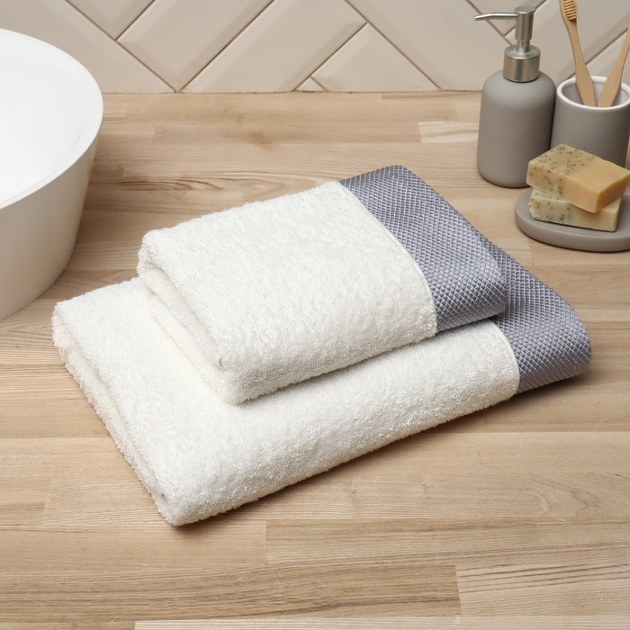 Полотенце махровое Love Life Honey, 70×140 см, хлопок 100%, молочное, серое