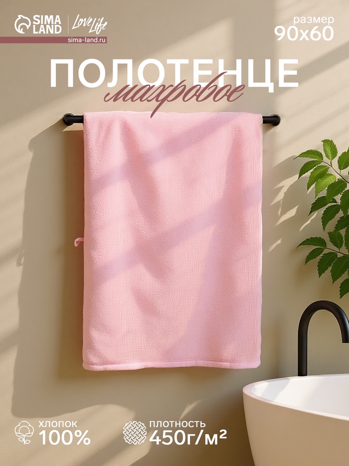 Полотенце муслиновое LoveLife, 60×90 см, 100% хлопок, пудровое