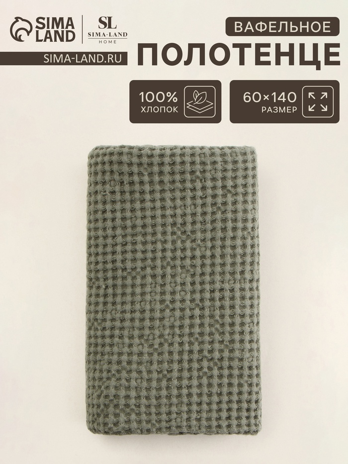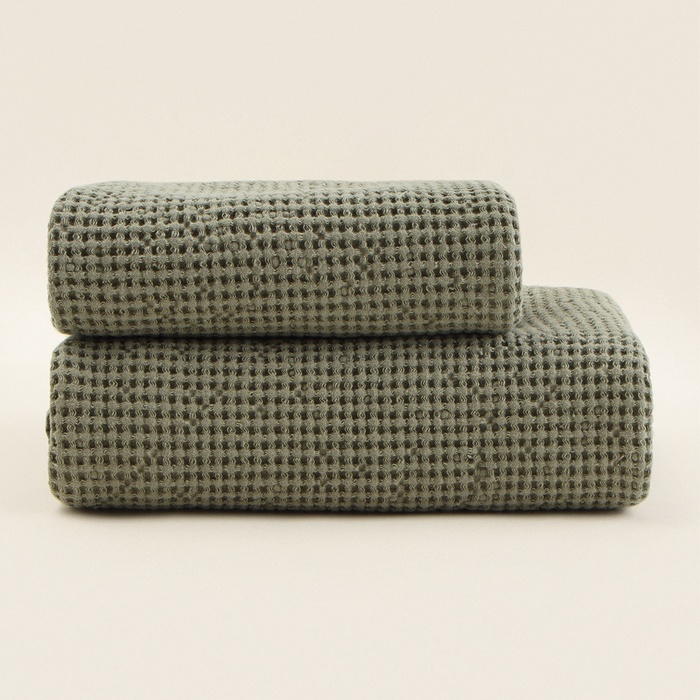 Полотенце вафельное SL HOME: Linen «Олива», 60×140 см, оливковое