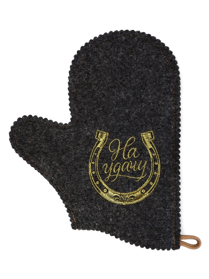 Рукавица для бани и сауны «На удачу», шерсть 50%, полиэфир 50%, тёмная