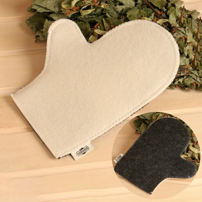 Рукавица для бани и сауны, полиэфир 70%, шерсть 30%, белая, серая, Добропаровъ