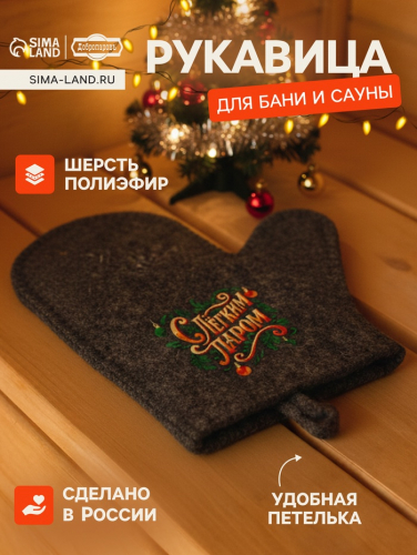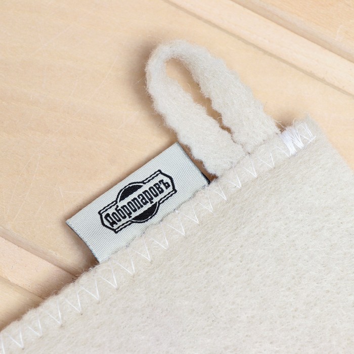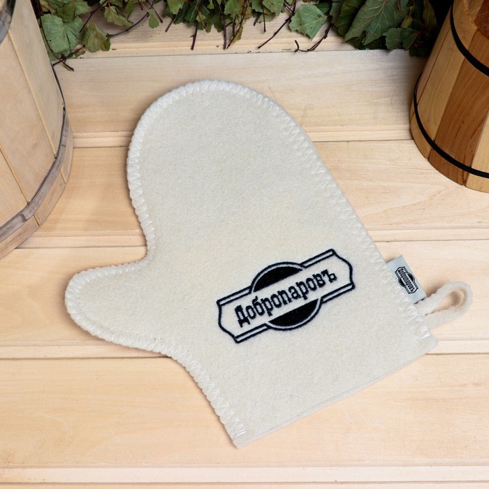 Рукавица для бани и сауны, с вышивкой, белая, «Добропаровъ»