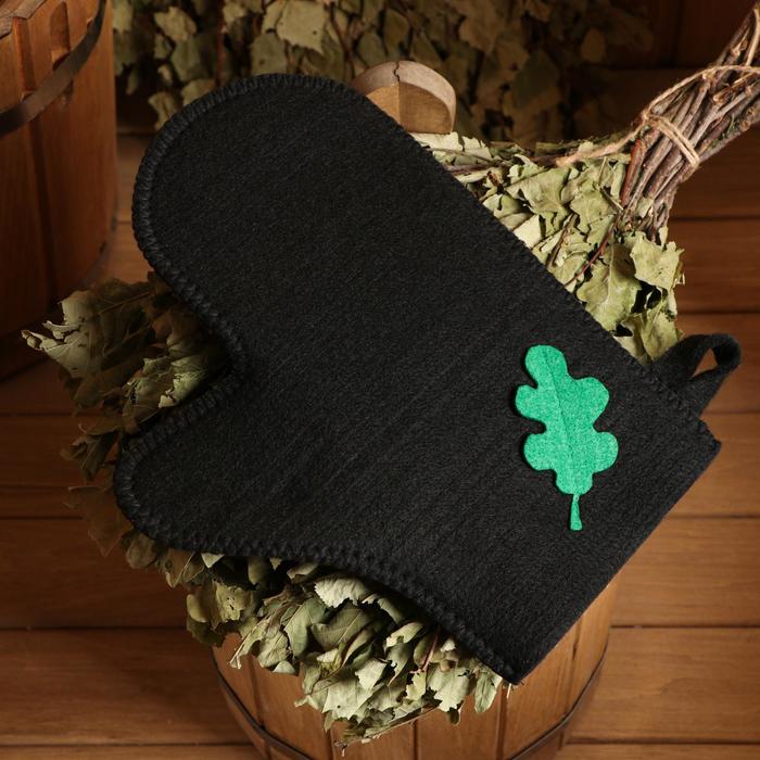 Рукавица для бани с аппликацией «Дубовый лист», полиэфир, чёрный,