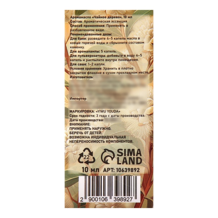 Аромамасло Чайное дерево 10 мл