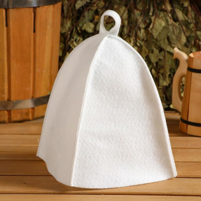 Шапка для бани и сауны, полиэфир 70%, шерсть 30%, белая