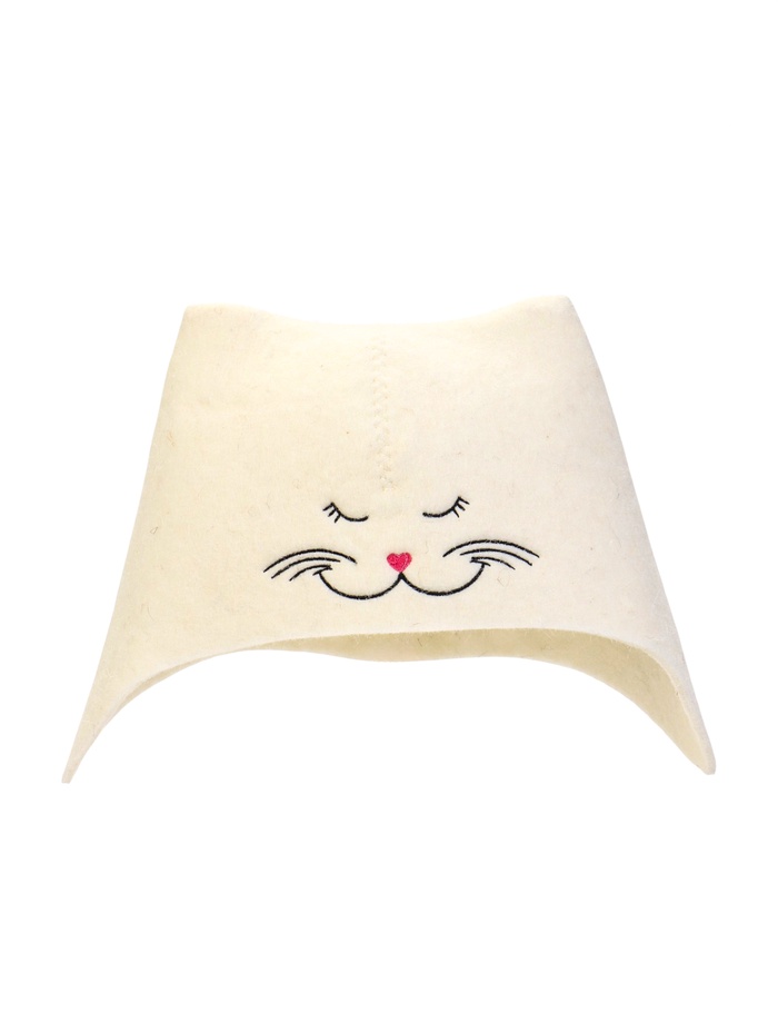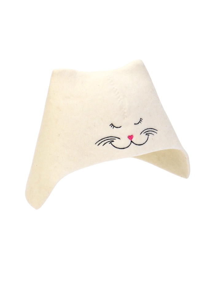 Шапка для бани и сауны, «Кошечка», полиэфир 70%, шерсть 30%, белая