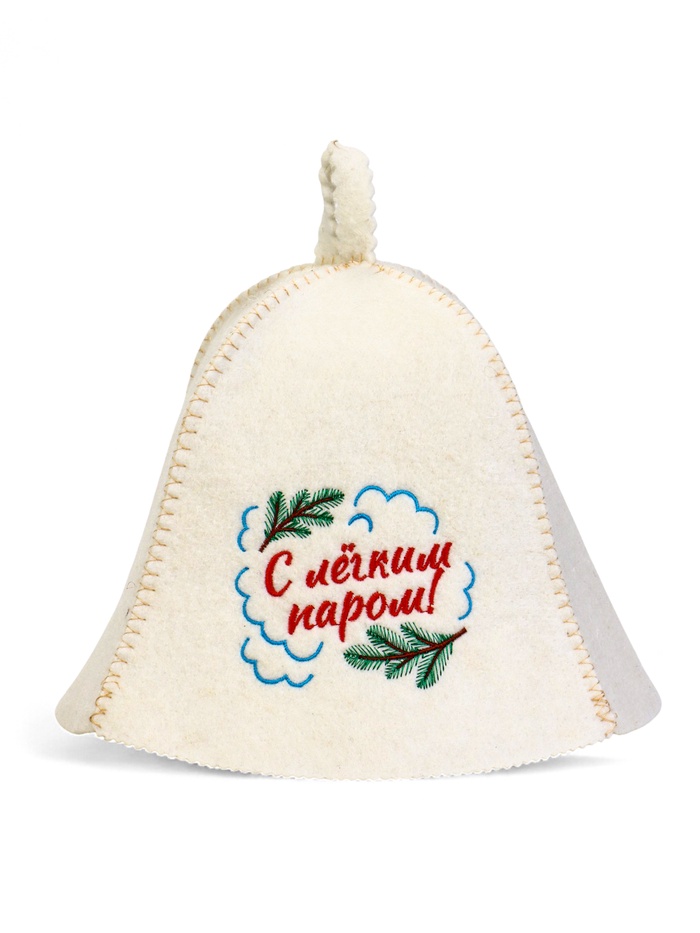 Шапка для бани и сауны «С лёгким паром!», шерсть 50%, полиэфир 50%, белая