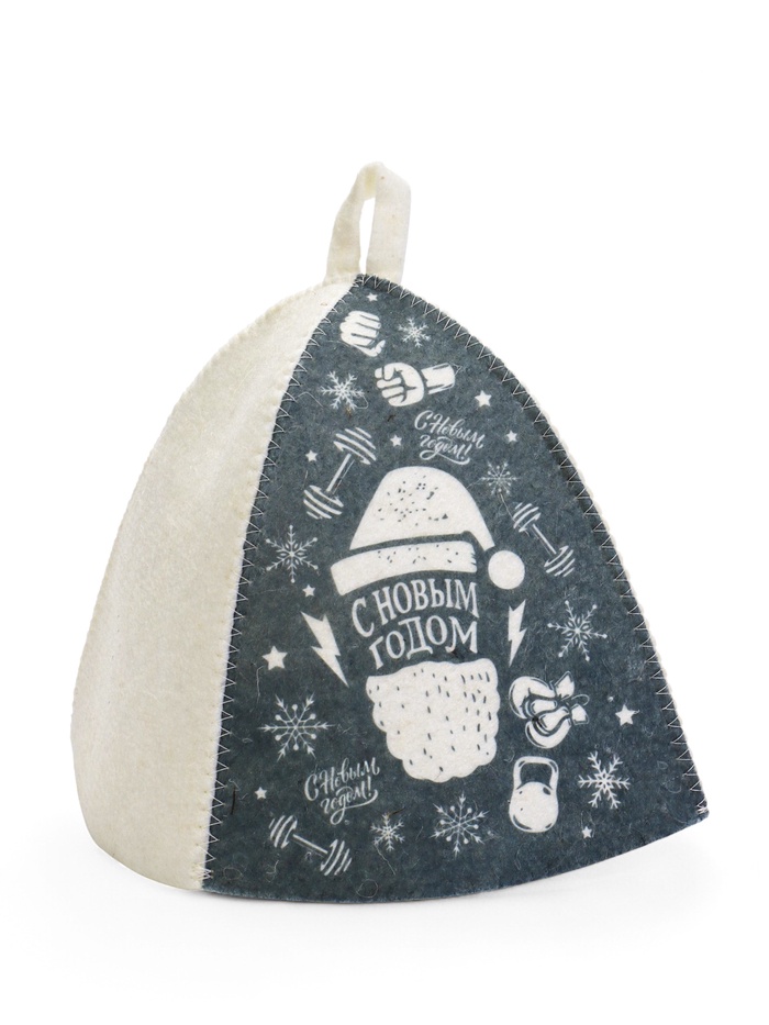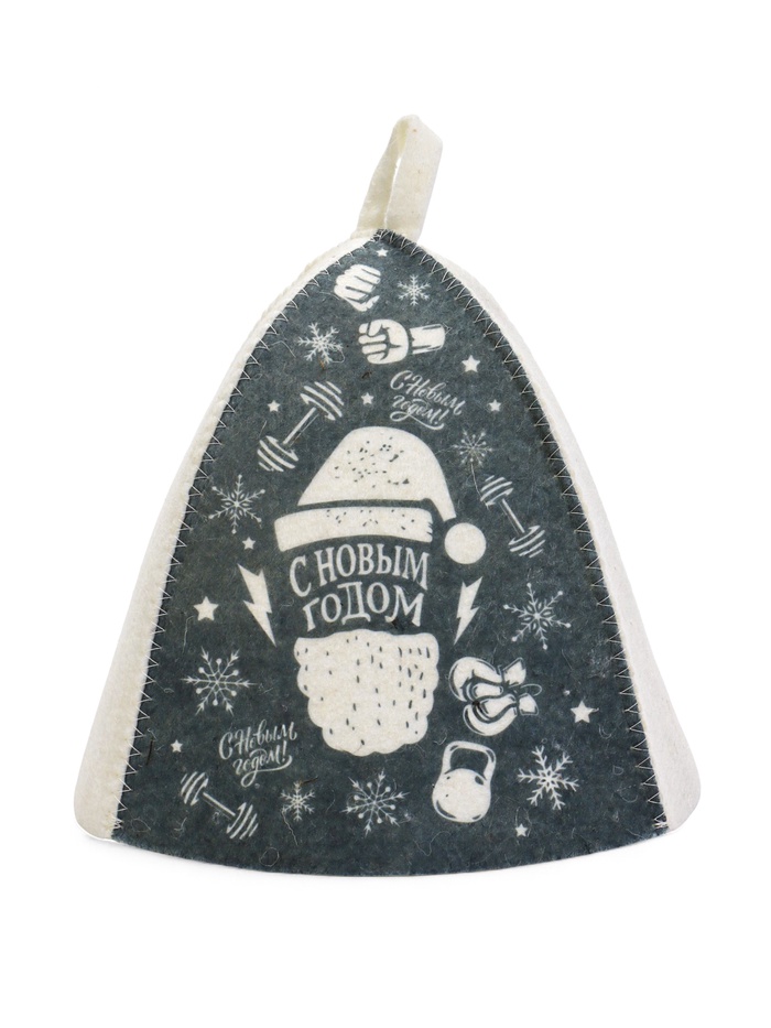 Шапка для бани и сауны, с принтом «С Новым Годом», полиэфир 70%, шерсть 30%, серая, «Банная забава»
