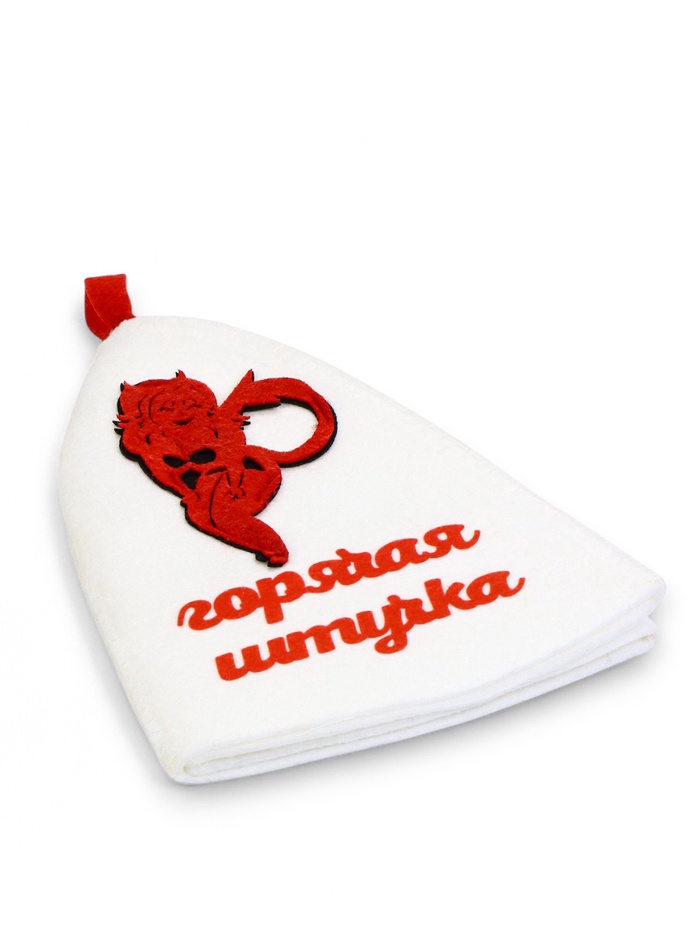 Шапка для бани и сауны, с вышивкой «Горячая штучка», полиэфир 70%, шерсть 30%, белая