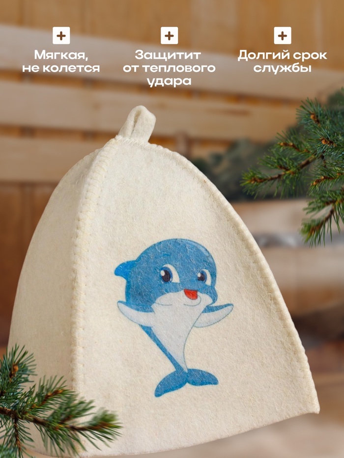 Шапка для бани и сауны «Дельфин», шерсть, полиэфир, детская, «Добропаровъ»