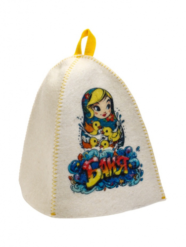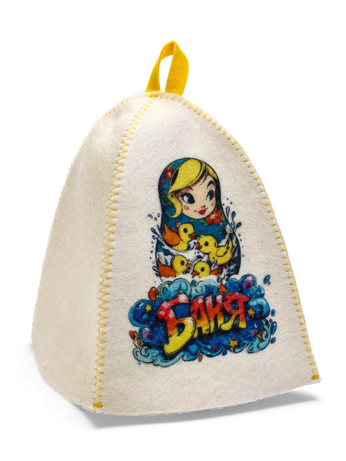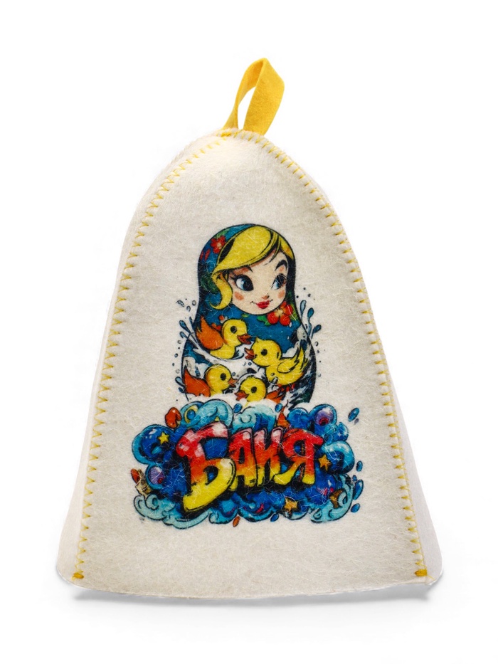 Шапка для бани и сауны «Матрёшка с уточками», полиэфир, шерсть, белая