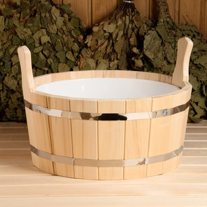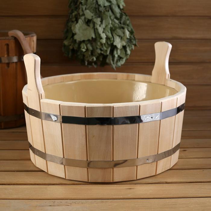 Шайка для бани и сауны, 15 л, липа, пластиковая вставка, «Добропаровъ»