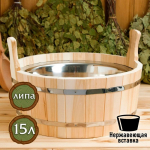 Шайка для бани и сауны, 17 л, липа, нержавеющая вставка