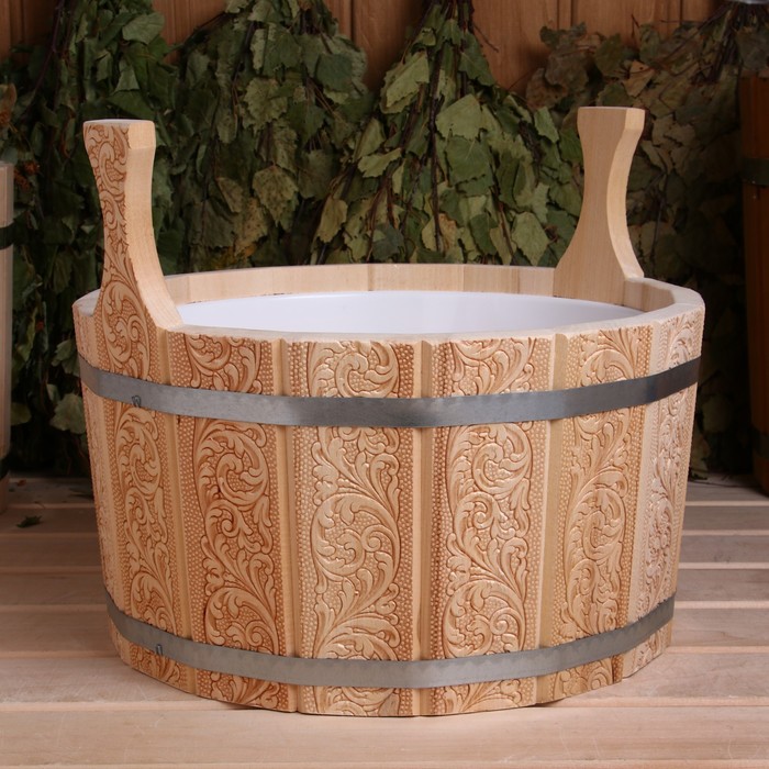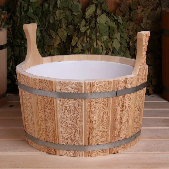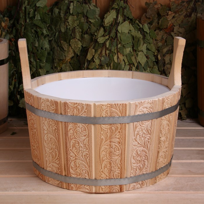 Шайка для бани и сауны «Русский узор», 8 л, деревянная, пластиковая вставка, «Добропаровъ»
