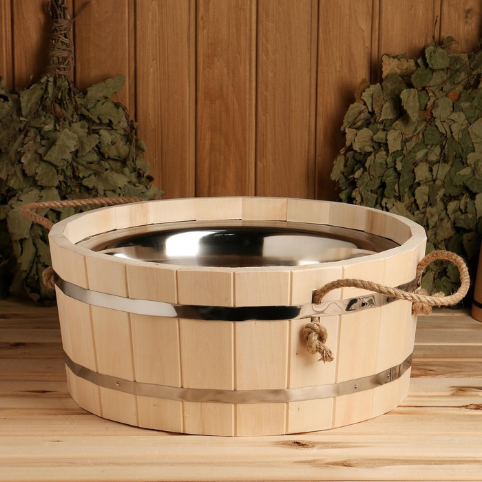 Шайка - таз для бани и сауны, 15 л, деревянная, нержавеющая вставка, «Добропаровъ»