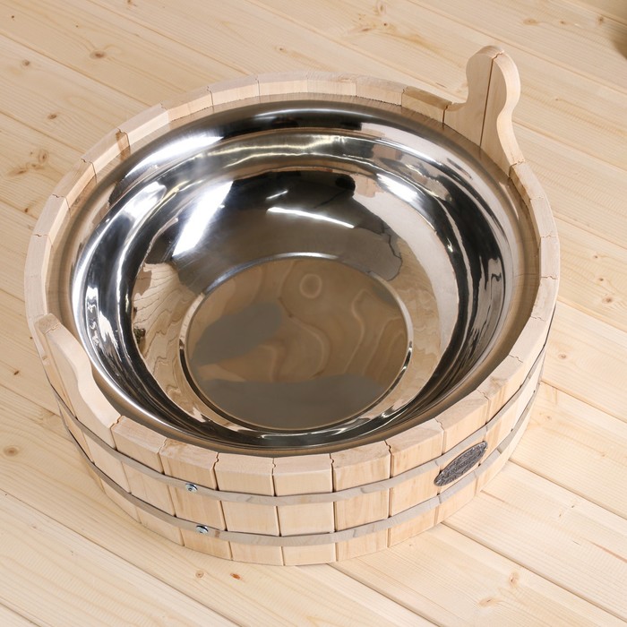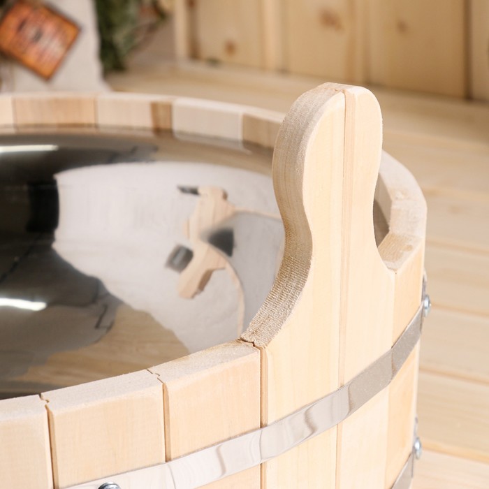 Шайка - таз для бани и сауны, 9 л, деревянная, нержавеющая вставка, «Добропаровъ»