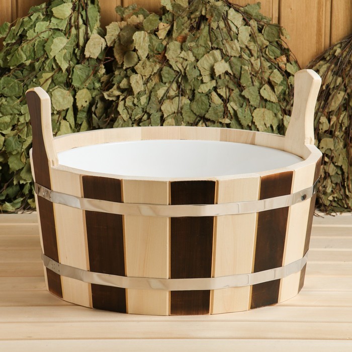 Шайка - таз для бани и сауны «День и ночь», 15 л, липа, пластиковая вставка, «Добропаровъ»