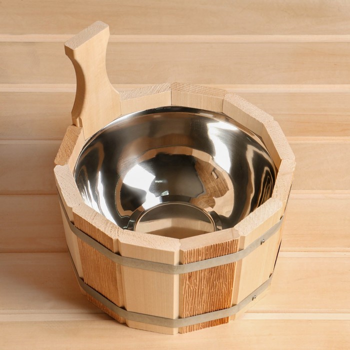 Шайка - ушат для бани и сауны «Термо», 3 л, деревянная, нержавеющая вставка, «Добропаровъ»