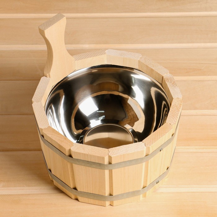 Шайка - ушат для бани и сауны, 3 л, липа, нержавеющая вставка, «Добропаровъ»