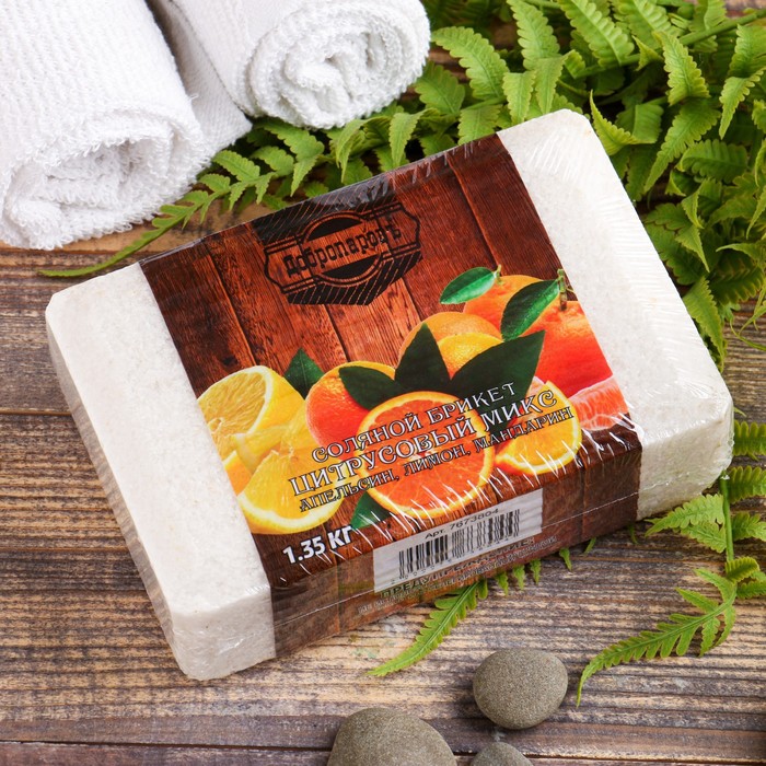 Соляной брикет для бани "Цитрусовый микс" апельсин, лимон, мандарин 1,35 кг