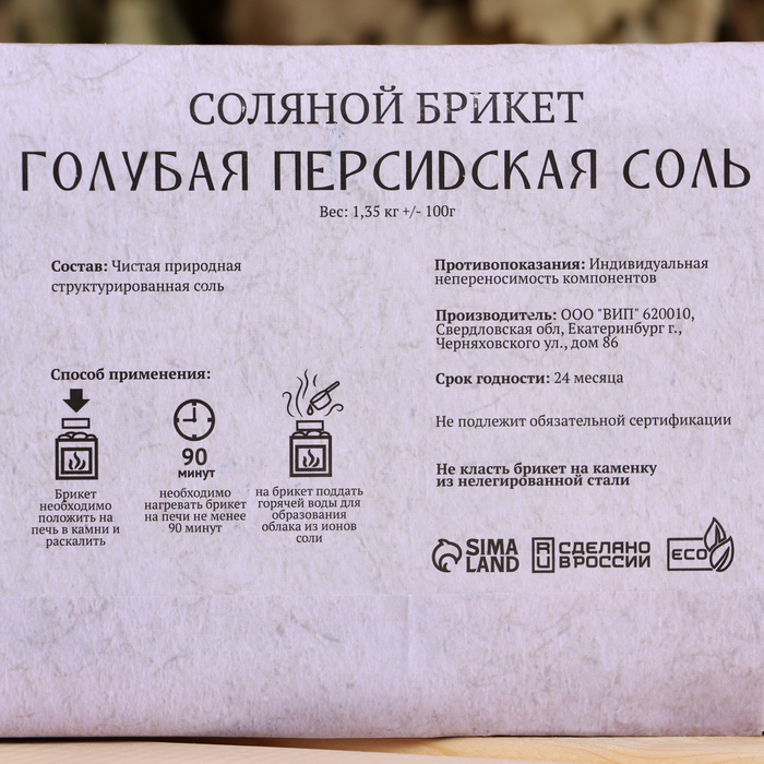 Соляной брикет «Голубая персидская соль» 1.35 кг «Добропаровъ»
