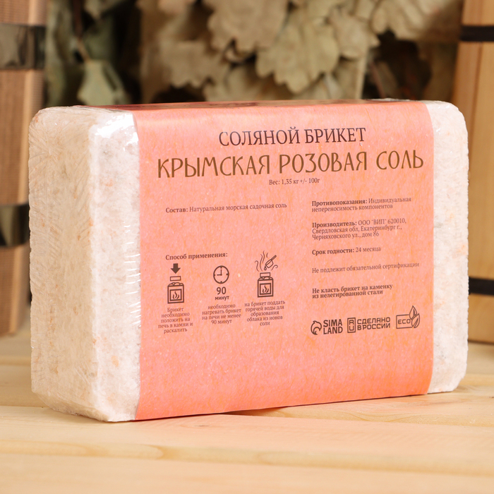 Соляной брикет из крымской розовой соли, 1.35 кг «Добропаровъ»