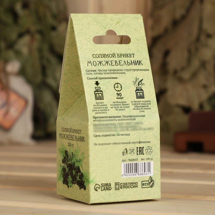 Соляной брикет куб «Можжевельник» 200 г «Добропаровъ»