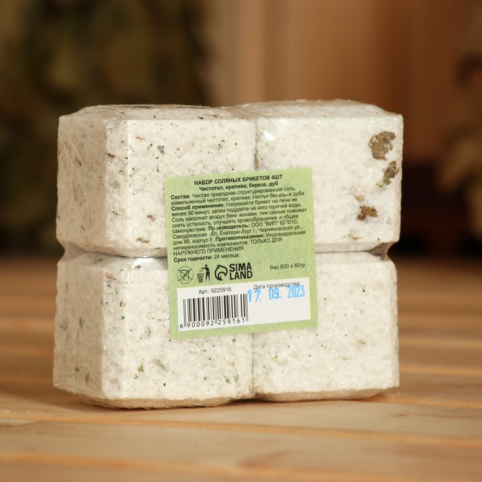 Соляной брикет набор 4 шт. «Чистотел, крапива, береза, дуб« по 200 г »Добропаровъ»