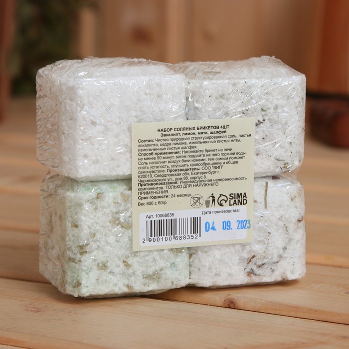 Соляной брикет набор 4 шт. "Эвкалипт, Лимон, Мята, Шалфей"