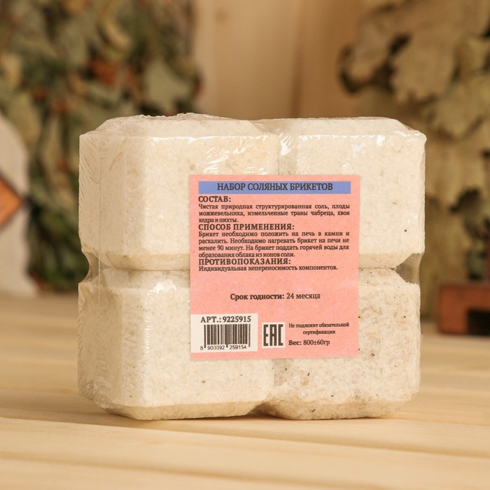 Соляной брикет набор 4 шт. «Можжевельник, чабрец, кедр, пихта« по 200 г »Добропаровъ»