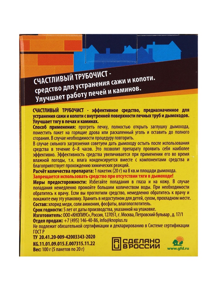 Средство для очистки дымоходов от сажи и копоти «Счастливый дачник - Трубочист», 5×20 г